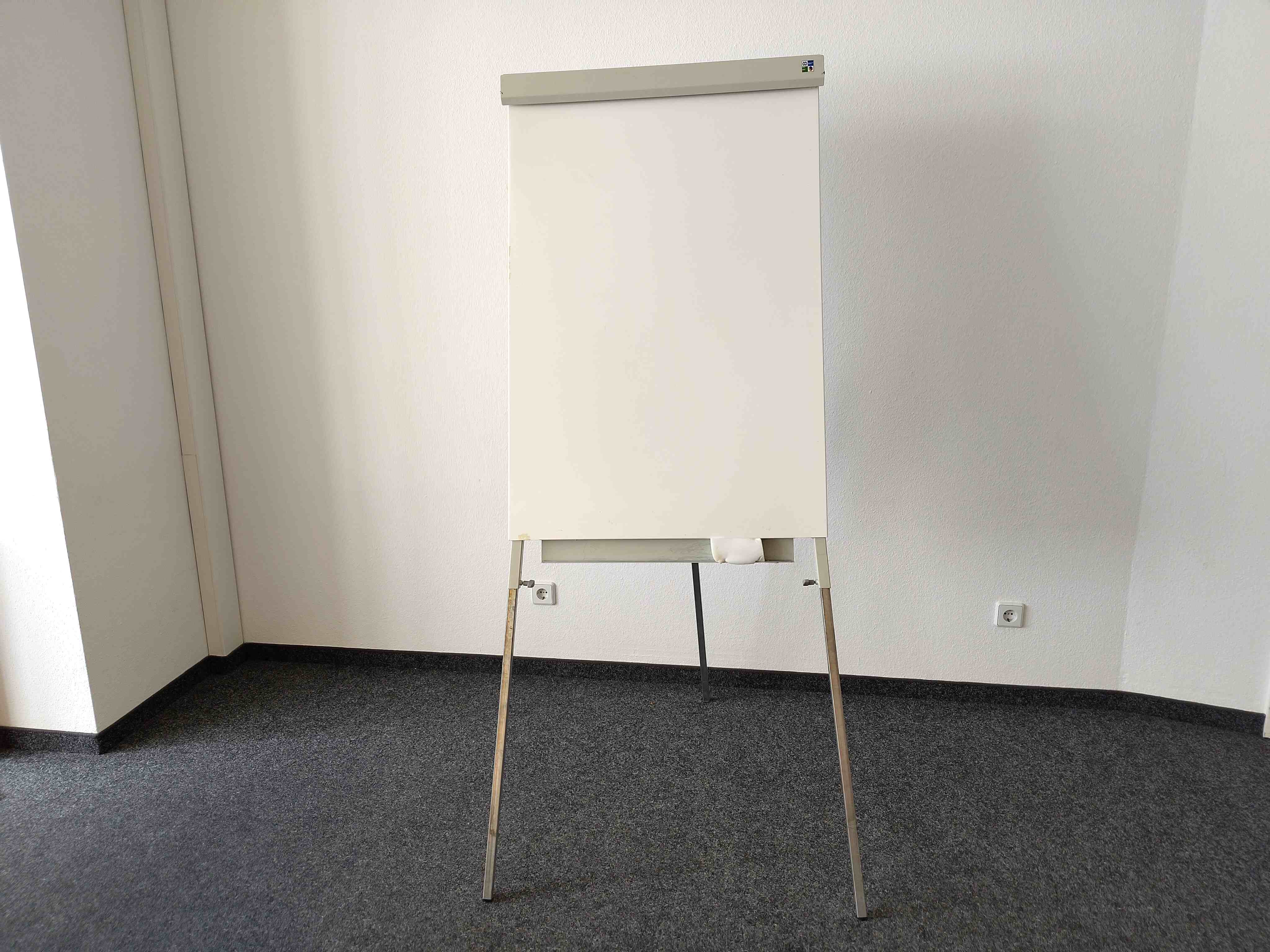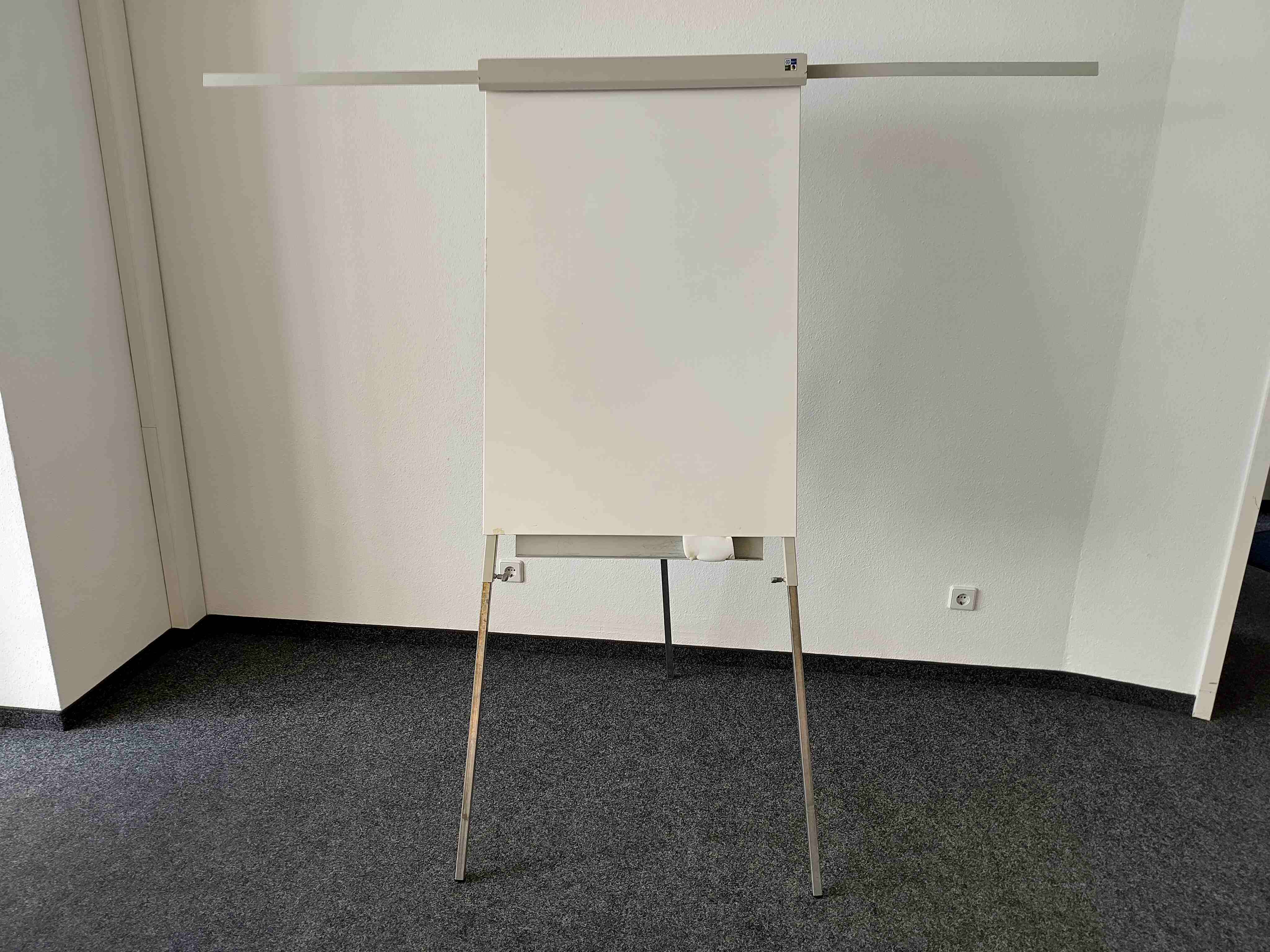 Flipchart auf drei Beinen. Preis bezieht sich auf eine Woche Leihdauer.